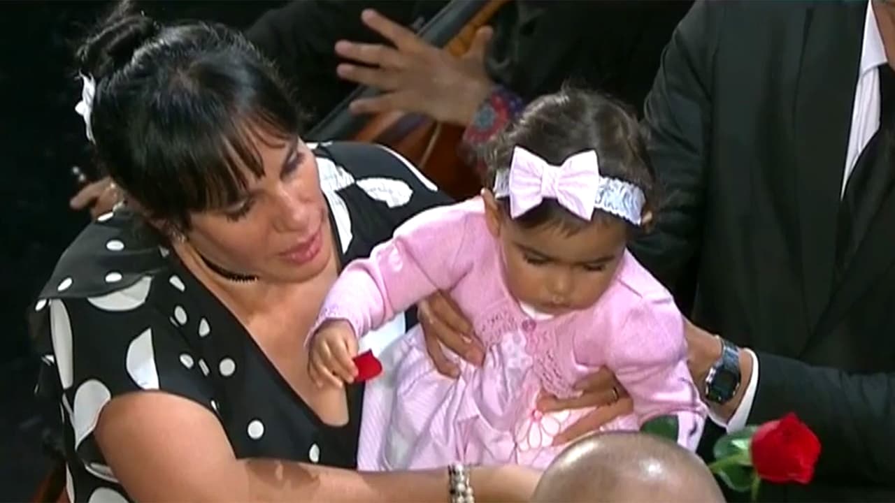 Marysol Sosa acerca a la nieta que José José no pudo conocer a dejar una flor en el féretro