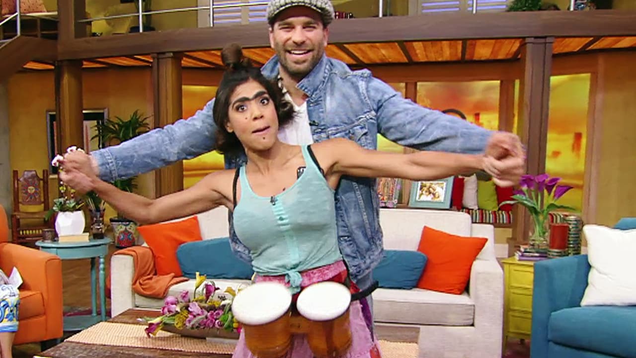 Mela la Melaza simuló un "aterrizaje de emergencia" en el regazo del galán Alejandro Nones