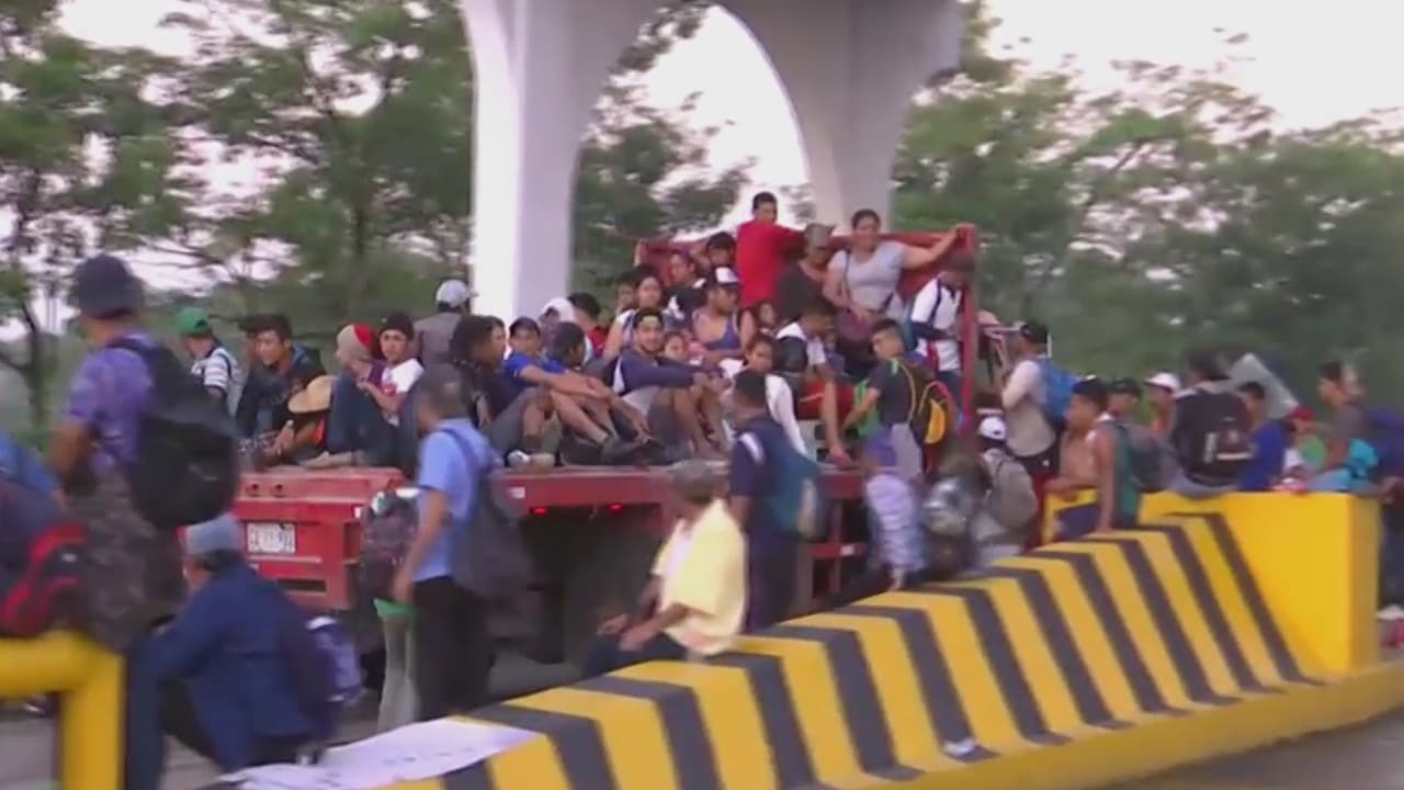 Migrantes de la caravana arriesgan sus vidas por conseguir un aventón en la carretera