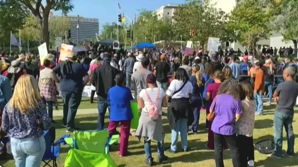 Miles de personas protestan contra el mandato de vacunación impuesto en Los Ángeles