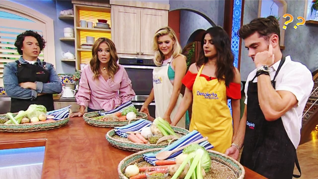 Zac Efron, Priyanka Chopra y todo el elenco de 'Baywatch' siguieron las instrucciones de Karla para preparar una ensalada... ¡pero la receta era en español!