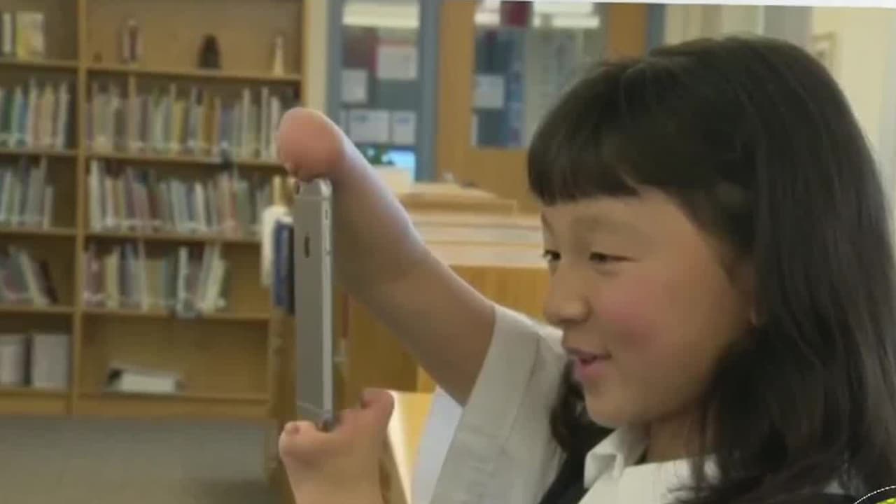 Sara Kinesley de 10 años está en tercer grado. Le encanta crear arte y escribir en letra cursiva, y lo hace tan bien que ganó el Nicholas Maxim Award, por lo que le entregaron un trofeo y 500 dólares en materiales educativos para su escuela en Maryland.