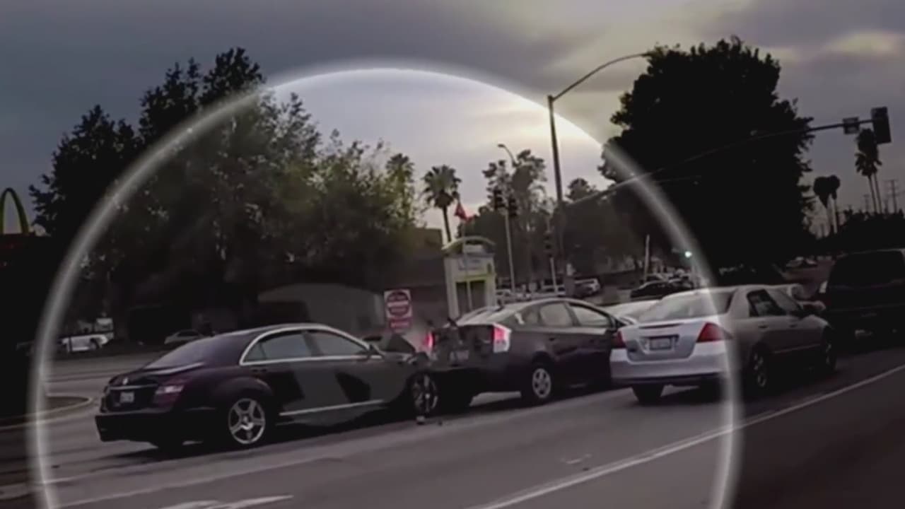El hombre de la moto decidió perseguir al auto que estrelló a varios vehículos y logró que minutos después un policía en California lo arrestara por los accidentes y por presuntamente conducir bajo el efecto del alcohol.