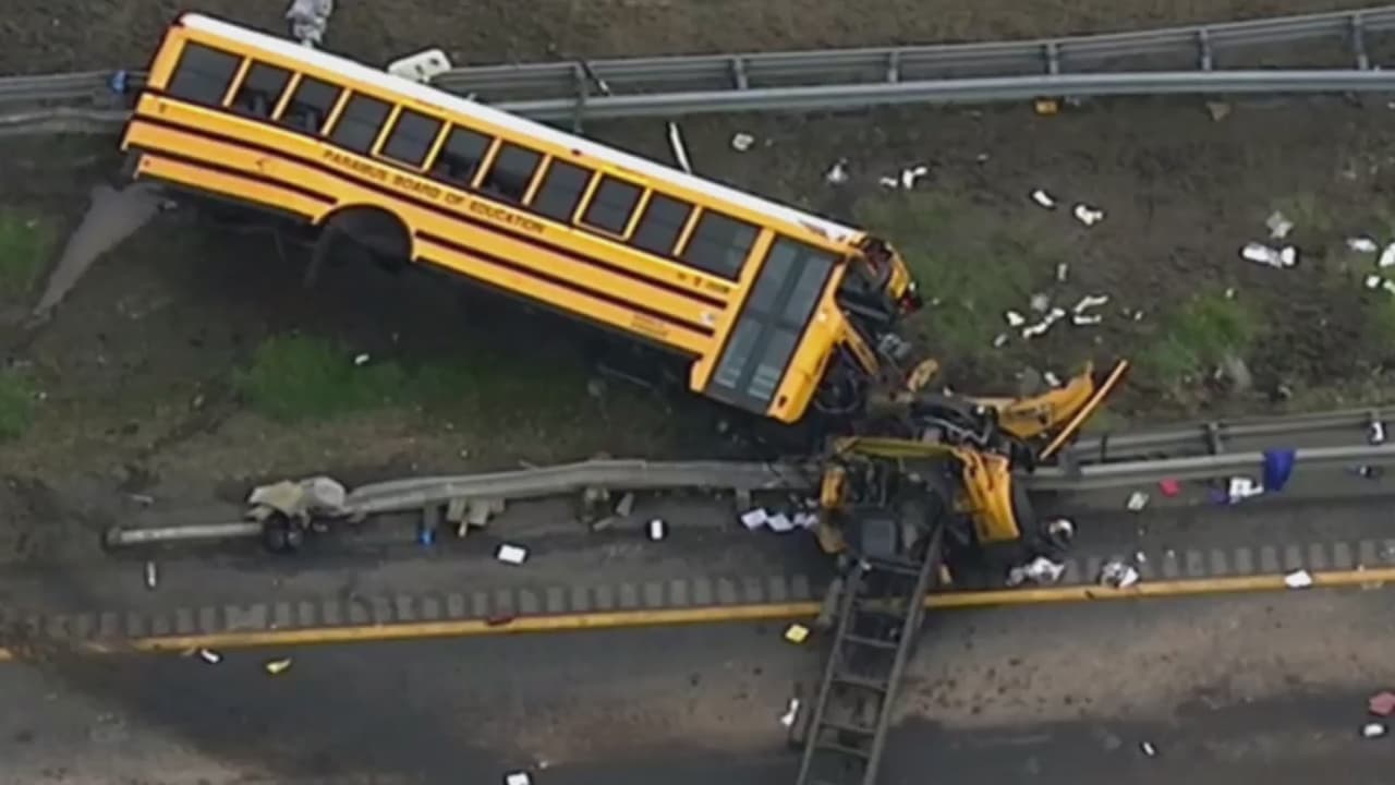El conductor del autobús escolar habría intentado hacer un giro ilegal encontrándose con un camión de carga que no frenó y lo chocó por detrás. Más de 40 personas resultaron heridas en el accidente.