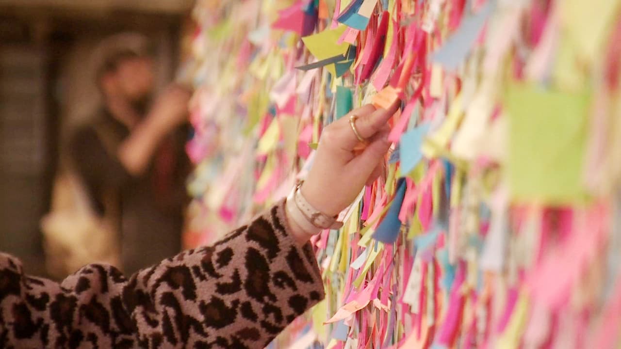 La pared 'Terapia en el Metro', idea del artista Mathew Chávez, alentó a los usuarios de la estación Union Square en la Gran Manzana a dejar escritos sus sentimientos en relación a las recientes elecciones.