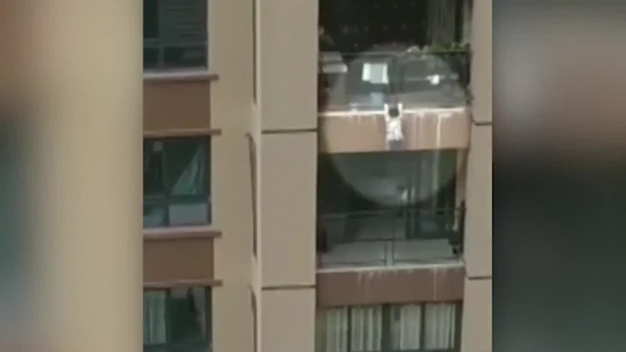 Familiares del pequeño lo dejaron solo en un apartamento en China, en donde llegó hasta el balcón y sorprendió a quienes lo observaron, pero también tomaron acción: se unieron con una frazada y cuando aparentemente el niño no pudo sostenerse más, los testigos lograron capturarlo y ponerlo a salvo.