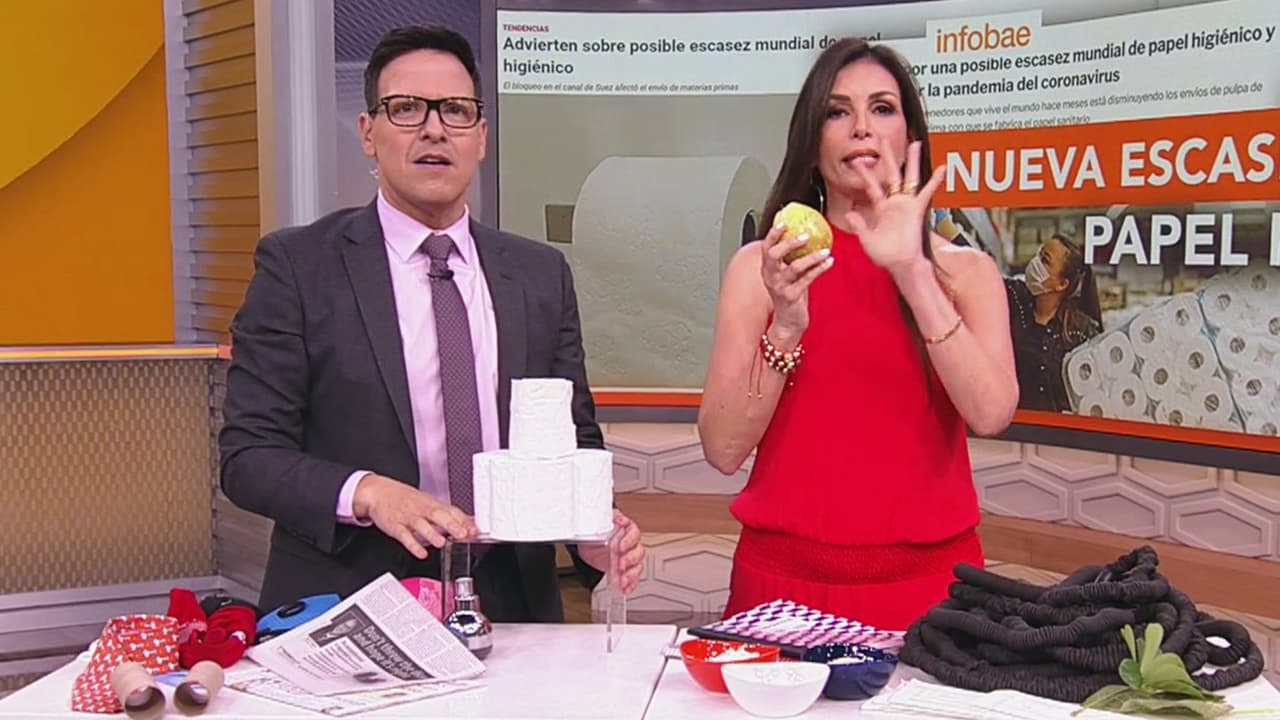 Ante una posible nueva escasez de papel higiénico en los supermercados, Giselle Blondet y Raúl González mostraron las alternativas que idearon para poder limpiarse adecuadamente cuando vayan al baño. Al final, la boricua corrió a poner a prueba algunas de sus ideas, dejando al venezolano boquiabierto.
