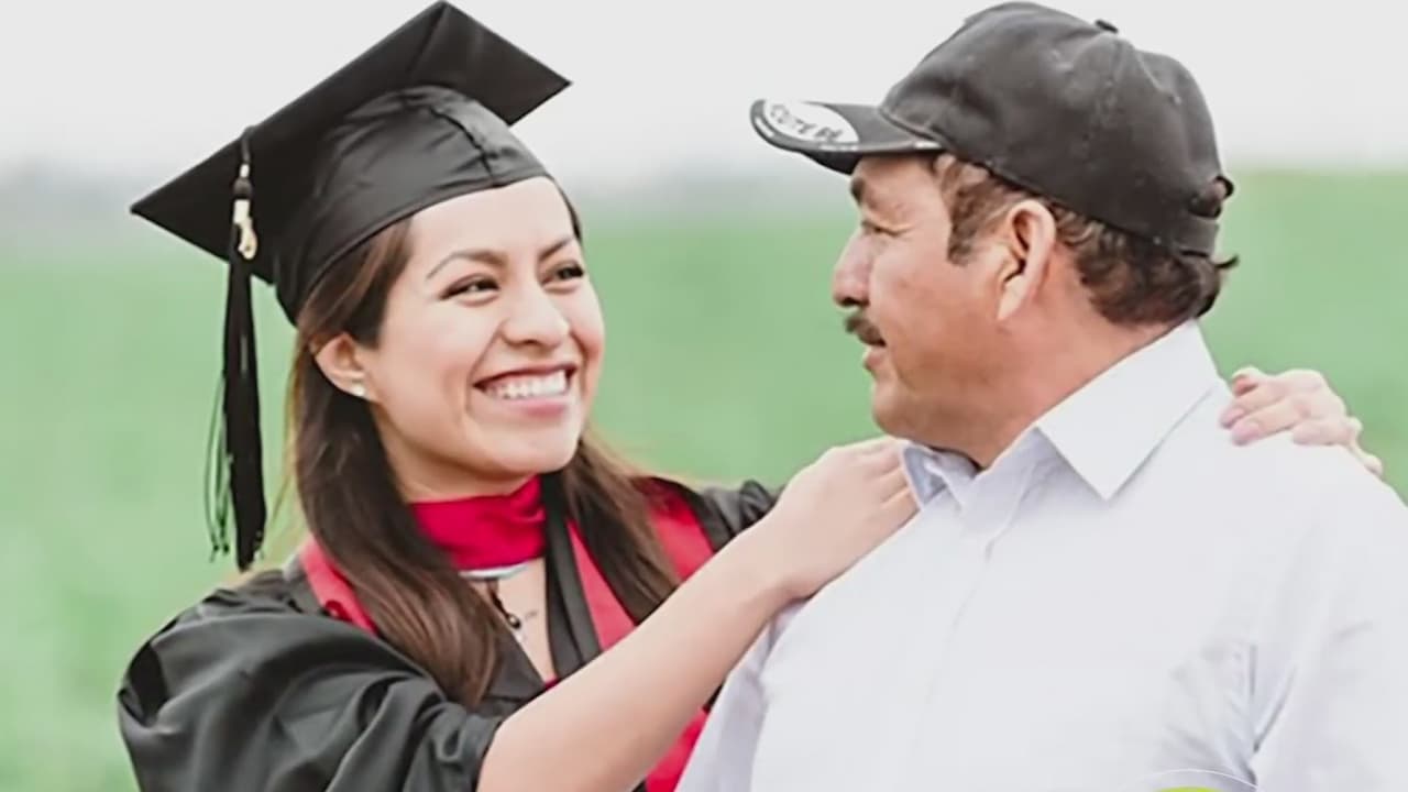 “Esta va a ser tu vida de ahora en adelante, a menos de que estudies”, fueron las palabras de la madre de Érika Sánchez a su hija, en un campo de cultivo en California. Y lo hizo. Érika se graduó de la maestría en educación y quiso homenajear a sus padres campesinos con estas imágenes que ya se han hecho virales.