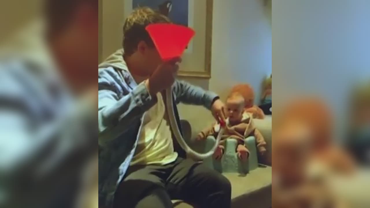 Padre ayuda a su bebé a alimentarse mejor modificando algo que él usaba cuando iba de fiesta