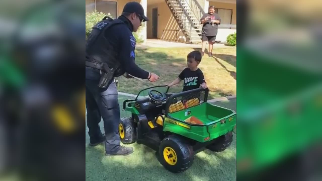 Policías de Arizona le devuelven la sonrisa a un niño cuyo pequeño tractor le había sido robado