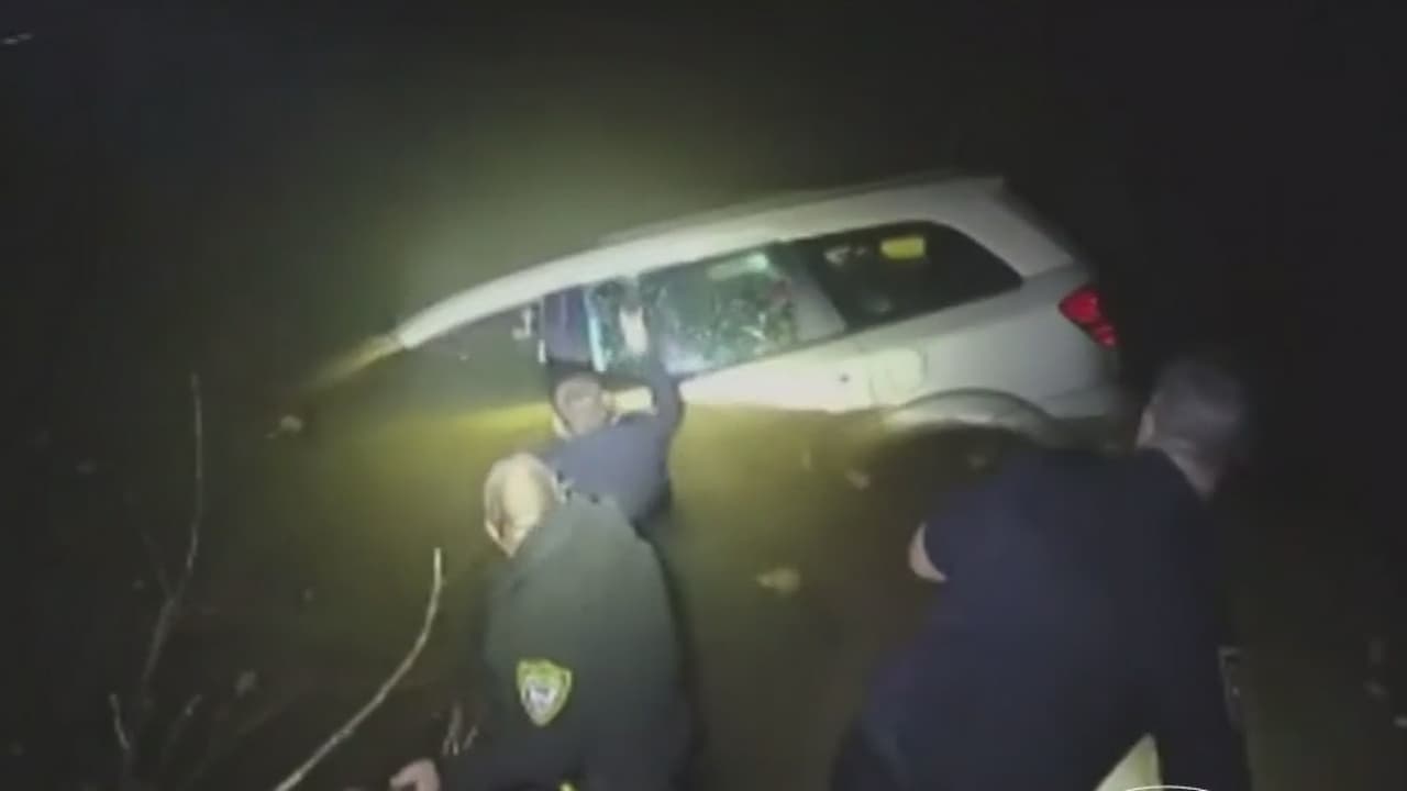 Policías rescatan a una mujer luego que su auto cayera en un río de Ohio