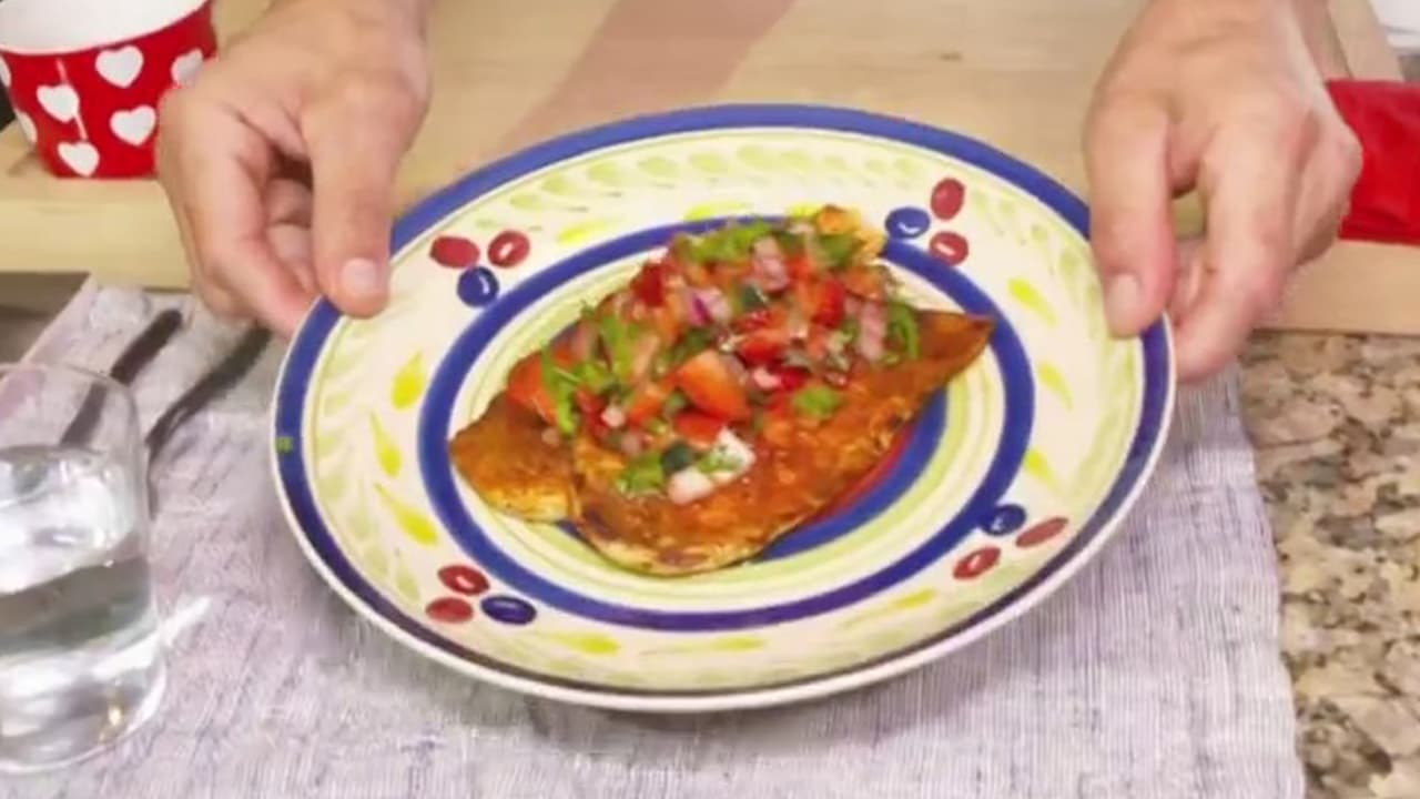 El chef Ronaldo Linares sabe la importancia de alimentarse saludablemente todos los días, por eso nos compartió esta receta sencilla, nutritiva y llena de sabor. Primero preparó una pechuga de pollo a la plancha hasta que quedó doradita, para luego acompañarla con un pico de gallo al cual le dio un toque dulce agregándole fresas.