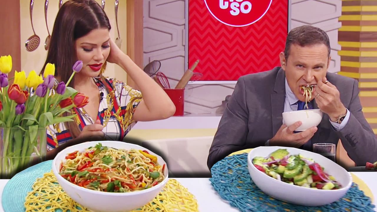 Nuestros chefs trajeron a la mesa dos recetas que te ayudarán a combatir este calor veraniego. Para abrir boca nos deleitaron con una fresca ensalada de pepino y sandía, ideal para mantenernos hidratados. Después nos hicieron este exquisito platillo con fideos asiáticos, perfecto para quedar satisfechos.