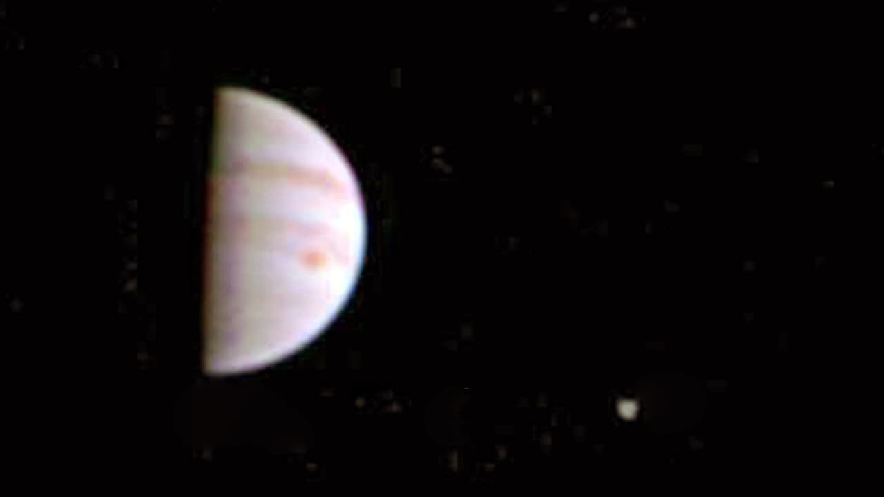 La sonda espacial "Juno" ya envió las primeras fotos del planeta más grande nuestro Sistema Solar, donde se pueden apreciar 3 de sus 4 lunas.