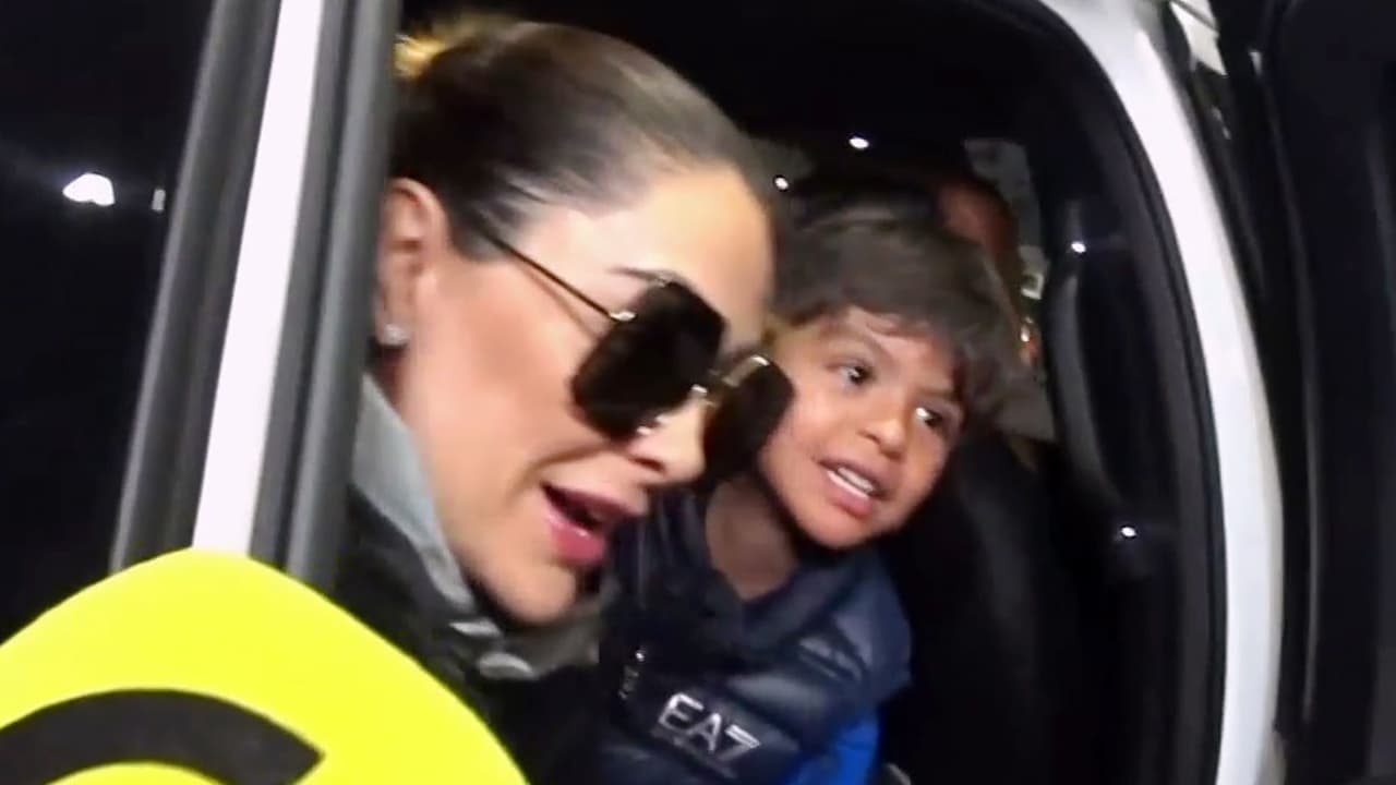 A su llegada al aeropuerto de la Ciudad de México con su novio Giovanni Medina y su hijo Emmanuel, la actriz y cantante fue recibida por la prensa, quien no dejó de hacerle preguntas sobre la enfermedad por la que atraviesa su hermana y si se casará pronto. Pero quien realmente acaparó la atención de las cámaras fue su pequeño, quien tenía un reclamo para todos los reporteros.