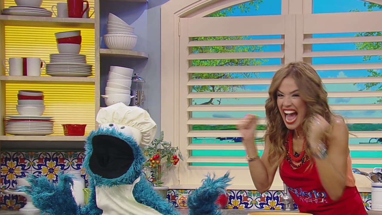 Karla Martínez preparó unas deliciosas galletas con chispas de chocolate y Cookie Monster hizo un verdadero desastre en nuestra cocina.
