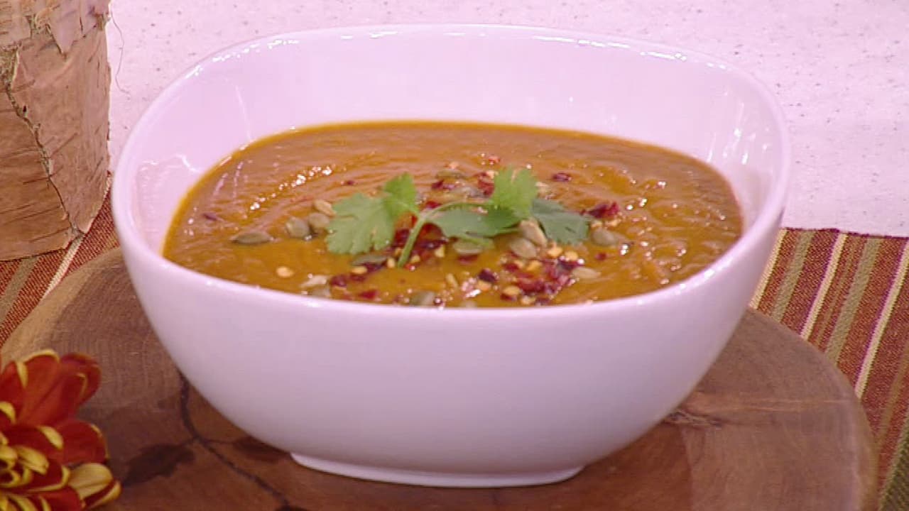 Para darle la bienvenida al clima frío del otoño nada mejor que una buena sopa humeante con todo el sabor de los vegetales de la temporada. El Chef Yisus nos enseña a preparar una crema de calabaza con un toque de curry, acompañada con sus semillas tostadas y una pizca de chile rojo triturado.
