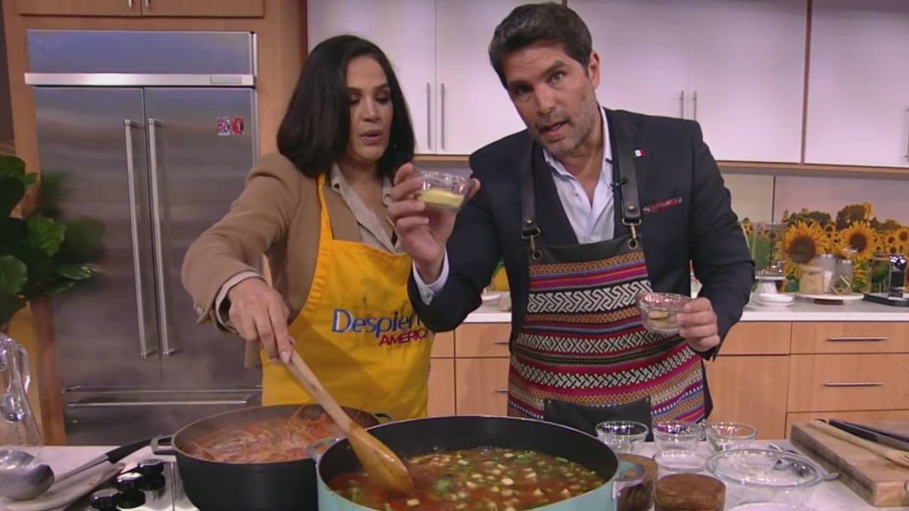 El actor se metió hasta la cocina de Despierta América con Karla Martínez para mostrar cómo se prepara el caldo langostino a la Verástegui, el cual sigue la receta tradicional de Tamaulipas con la que su familia lo ha preparado por muchas generaciones y que, además de delicioso, asegura tiene un efecto “levanta muertos”.