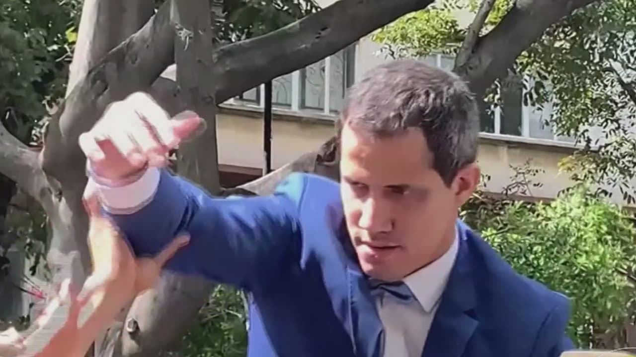 Recorre el mundo imagen de Juan Guaidó escalando reja del Parlamento mientras fuerzas del régimen le impedían entrar