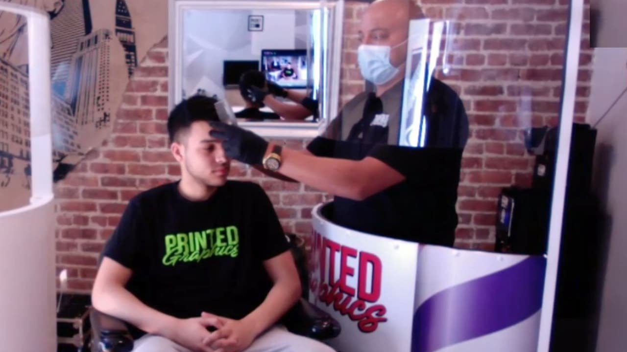 Edwin Ramírez es un barbero de Nueva Jersey que ideó una nueva manera de atender a sus clientes ahora que pueda retomar su negocio tras el cierre provocado por la pandemia del coronavirus. Y así es como ahora cortará el cabello y le dará forma a la barba de todo aquel que llegue a sentarse a su silla.