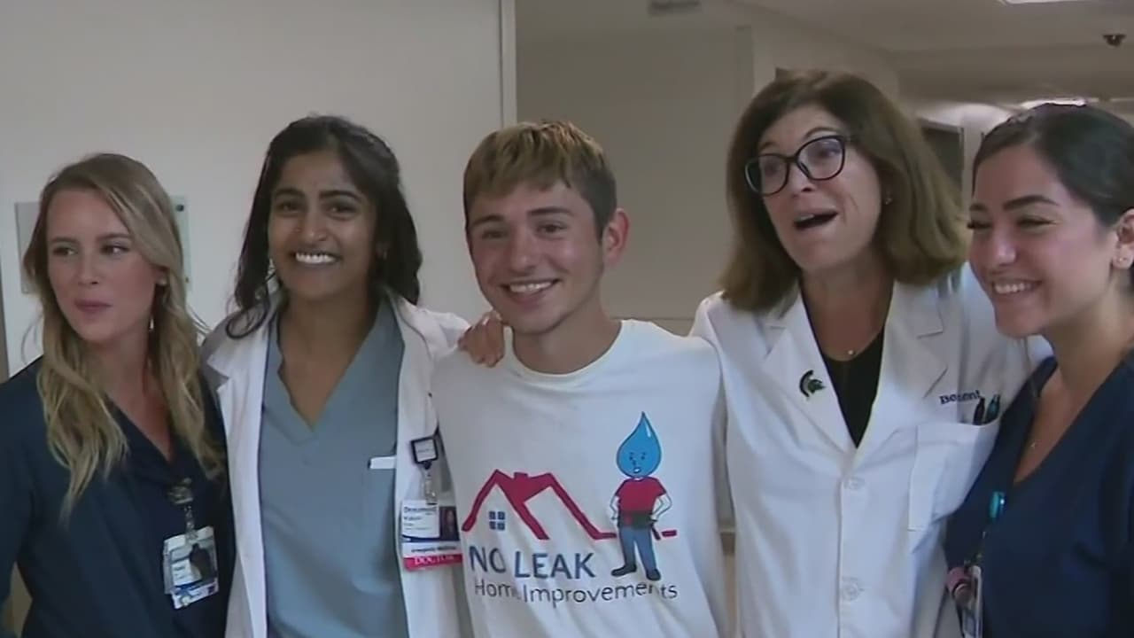 Michael, de 20 años, estaba trabajando con una escalera metálica en Michigan cuando tocó un cable dañado y se electrocutó. Enseguida le hicieron maniobras de resucitación cardiopulmonar; luego en el centro médico recibió varias descargas de desfibrilador.