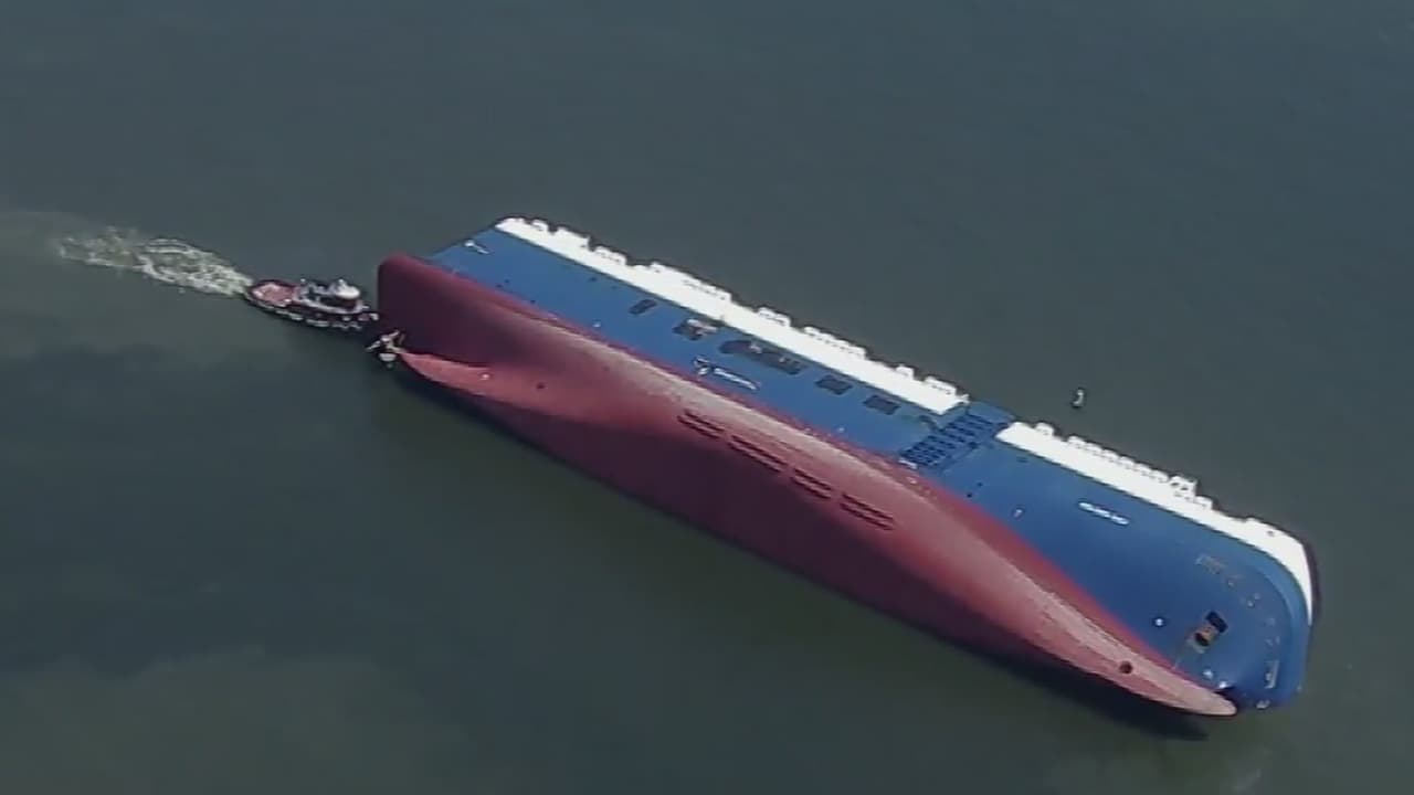 La embarcación de carga naufragó provocando un incendio. La Guardia Costera logró rescatar a unos 20 tripulantes del Golden Ray, el barco en llamas que también volcó muy cerca del puerto de Brunswick, pero cuatro más que son originarios de Corea del Sur no han logrado ser salvados por los peligros de la búsqueda.