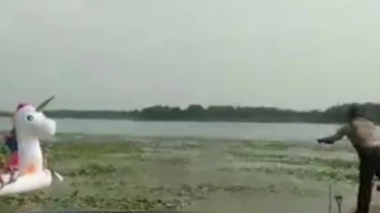 Se quedan varados en un unicornio en medio de un lago y la policía los tiene que rescatar (es en serio)