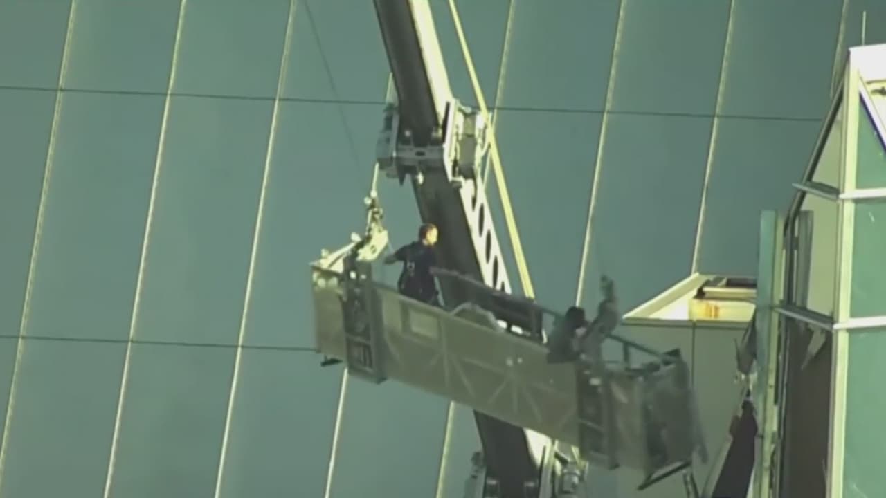 Sin control y a merced del viento: dos trabajadores quedan atrapados en el andamio de un rascacielos de Oklahoma