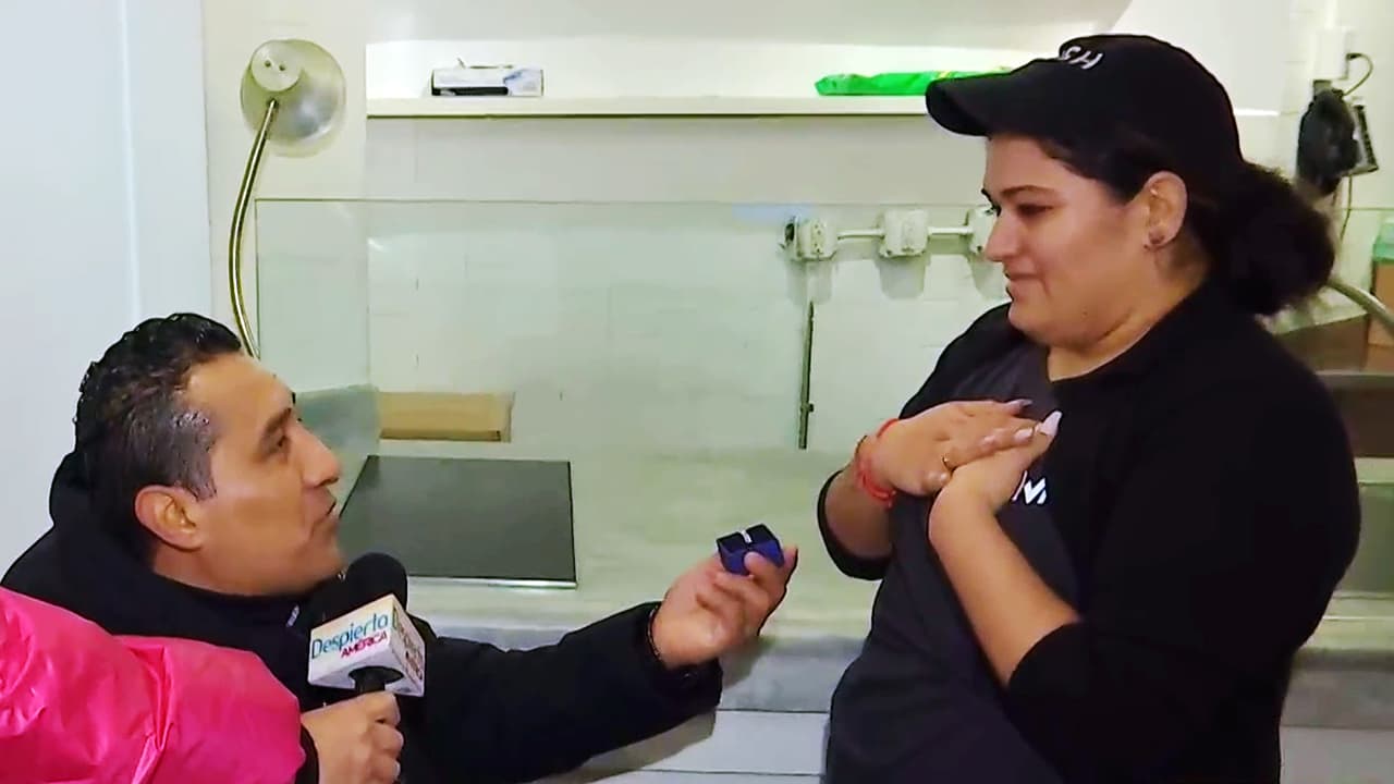 Sorprendida en el trabajo, esta novia recibió el anillo de compromiso con Despierta América como cómplice
