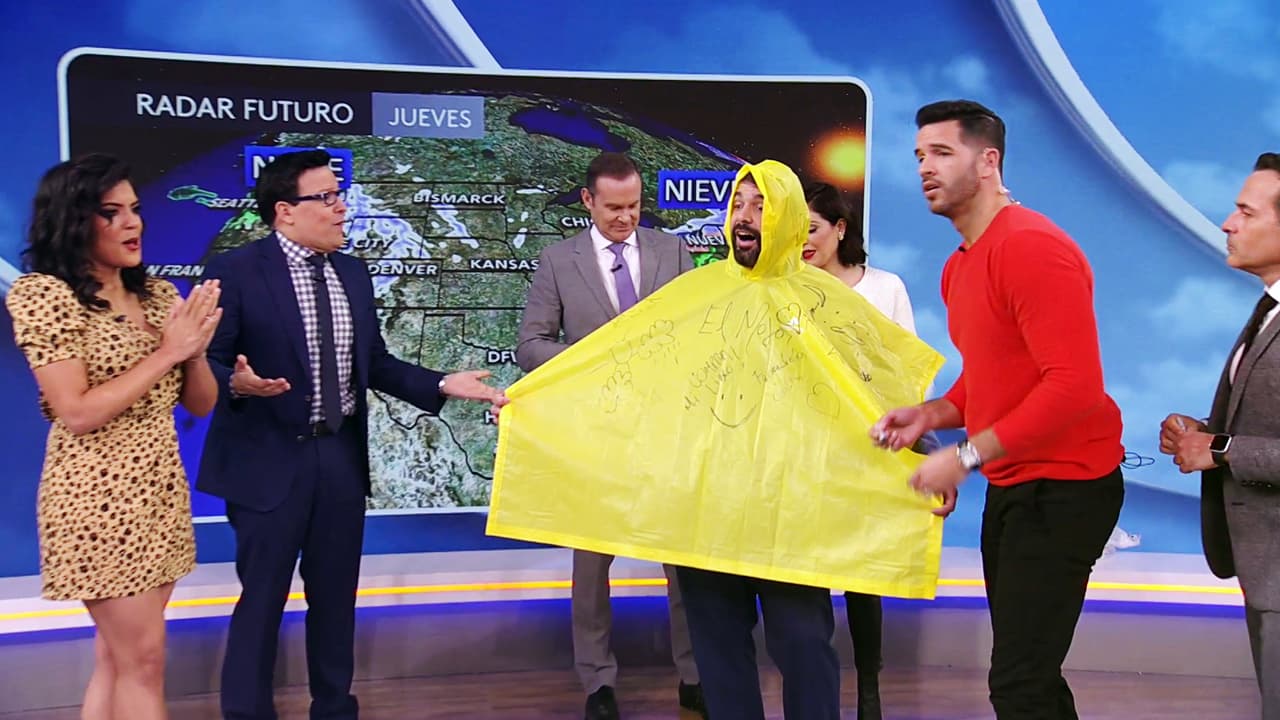 El 5 de febrero se celebra en los Estados Unidos a los meteorólogos y presentadores del estado del tiempo que día a día nos informan las condiciones climatológicas a lo largo del país. Por eso decidimos sorprender a Albert Martínez al terminar su reporte, dándole un regalo que le será muy útil (fuera de los estudios).