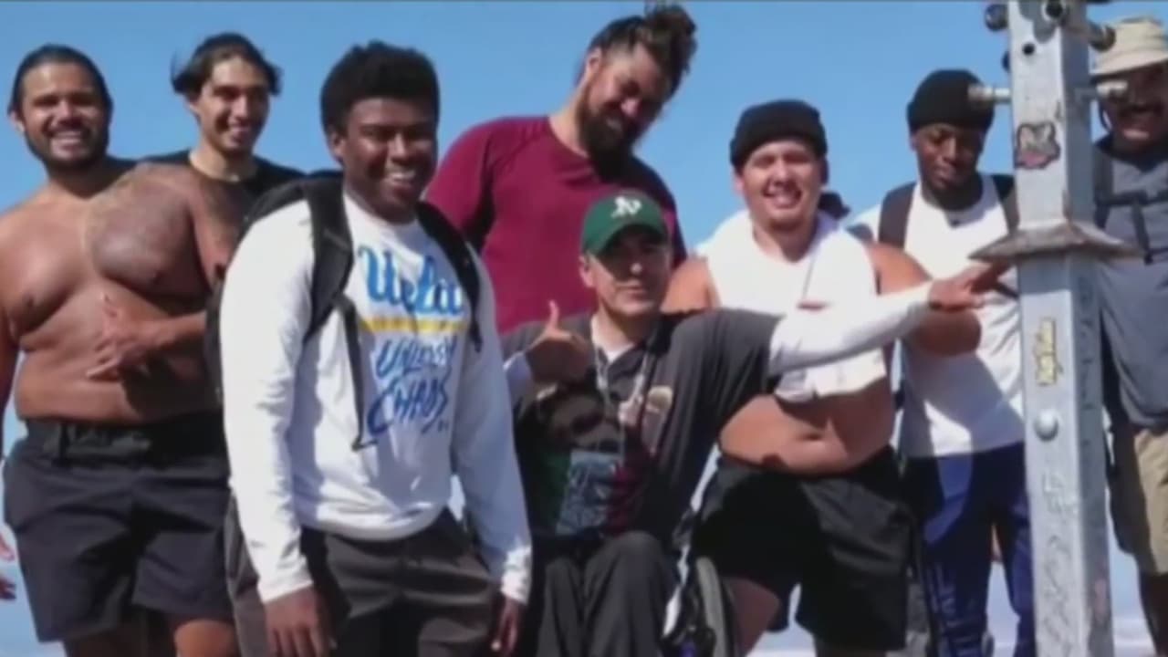 Su silla de ruedas no truncó su sueño: equipo de fútbol americano lleva a un hombre a la cima de una alta montaña