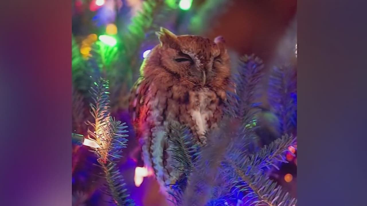 Un adorno con vida: búho se cuela en una casa y se acurruca en las ramas del árbol de Navidad