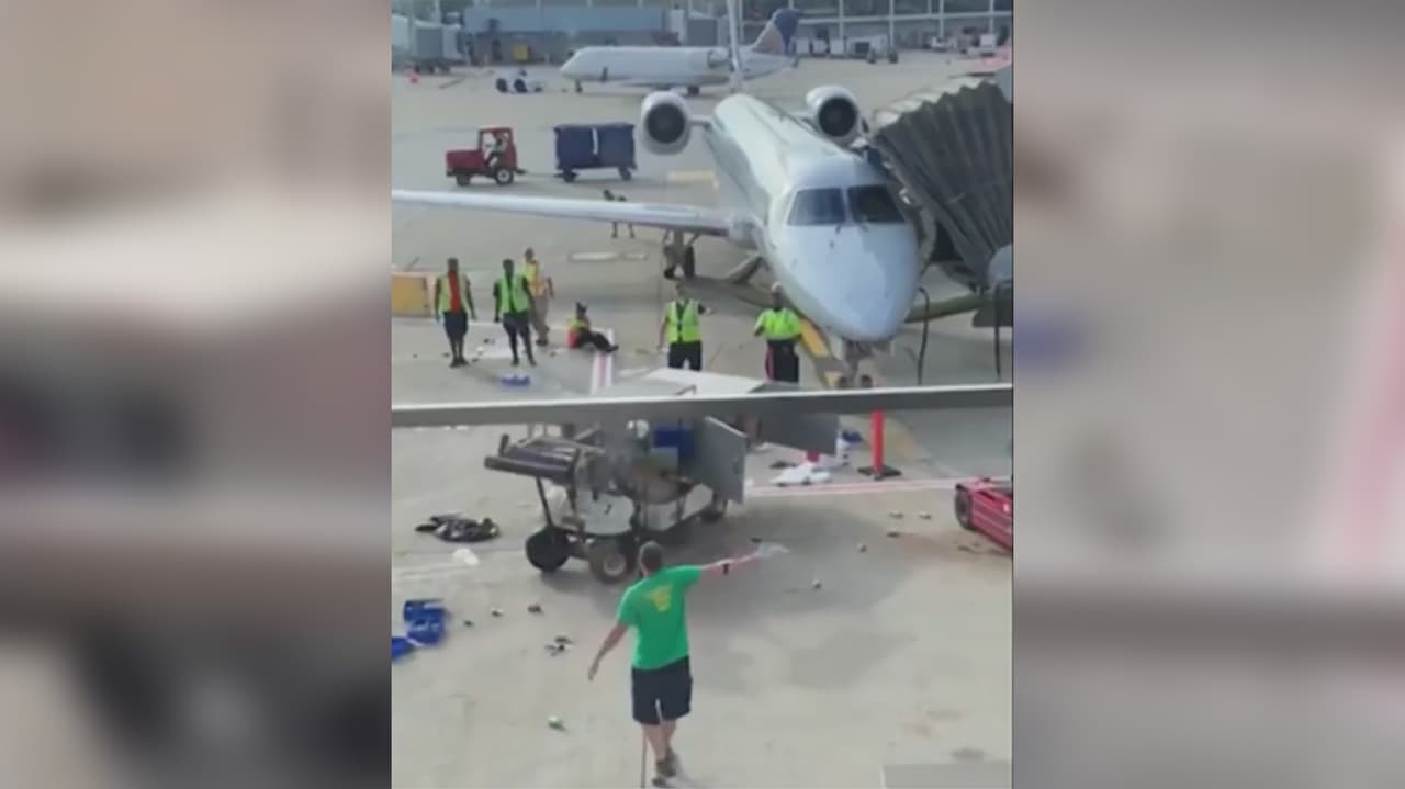 El vehículo con la comida de los pasajeros no dejaba de dar vueltas sobre la pista ante la mirada atónita de varios empleados, hasta que uno de ellos impacta el carro y logra frenarlo. ¿Qué causó esta peculiar escena? Te contamos