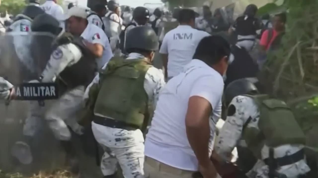 Un muro de agentes de la Guardia Nacional bloquea el paso de la caravana migrante en el sur de México