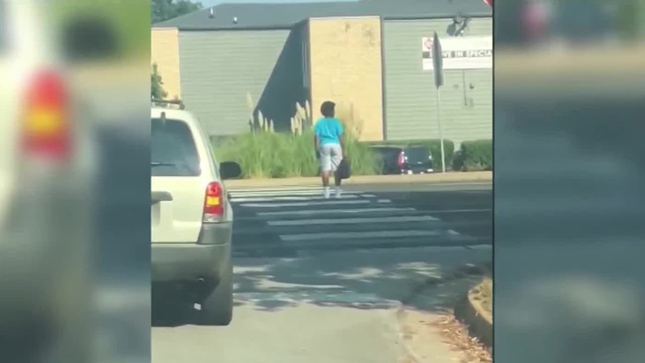 Las imágenes muestran al niño de 12 años esperando el momento de cruzar de un lado al otro de una vía en Texas, para lo cual debe esquivar siete vehículos, puesto que ninguno se detiene, a pesar de que las leyes de tránsito indican que los conductores deben ceder el paso a los peatones.