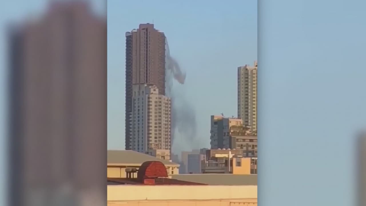 Una cascada emerge de un rascacielos por el terremoto que ha dejado al menos 11 muertos en Filipinas