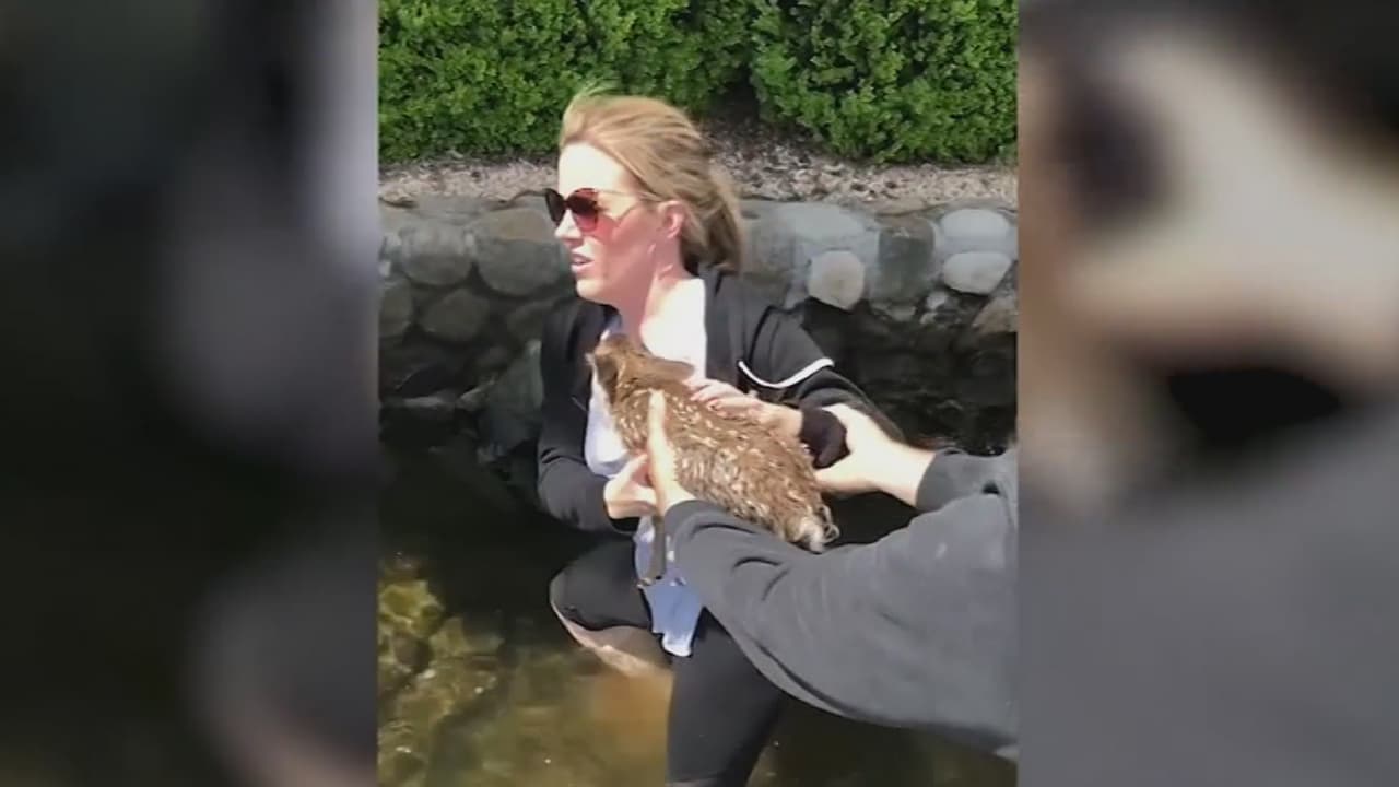 Las imágenes fueron grabadas en California. El llanto del animalito hizo que la familia lo buscara y hallara dentro del agua, por lo que lo sacaron y lo llevaron hasta los arbustos, en donde también lo ayudaron para que se encontrara con su madre.