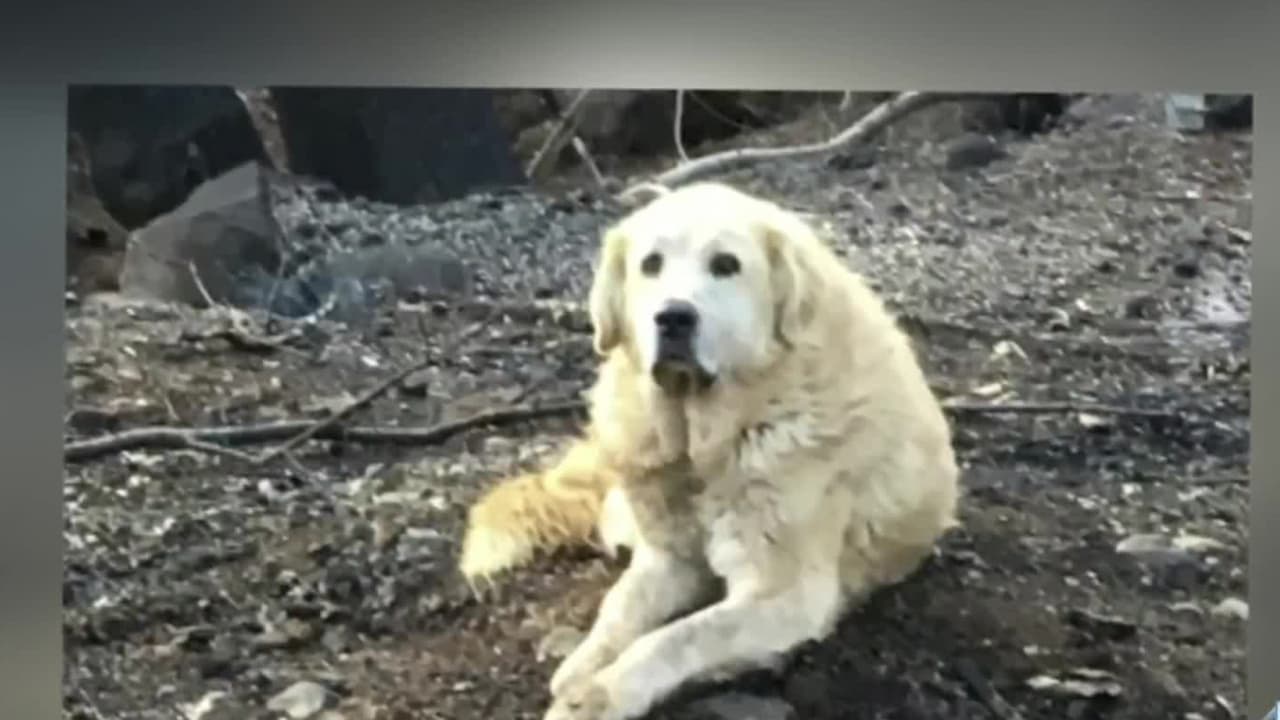 Luego de varios días de los incendios en California, una mujer logra encontrar con vida a sus perros Miguel y Madison, quien la esperaba junto a los restos de la casa que habitaban.