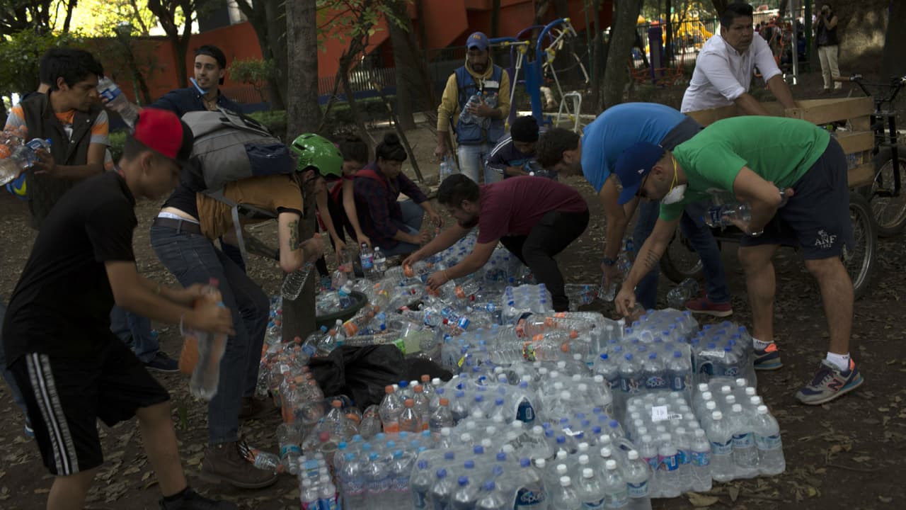 Voluntarios reparten comida a quienes ayudan en labores de rescate en México