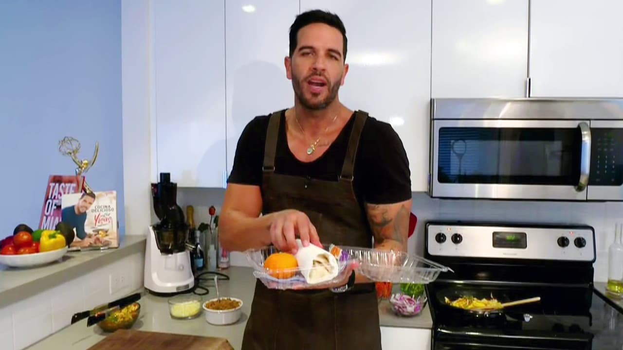 Nuestro chef nos recibió en la cocina de su casa para mostrarnos el desayuno que prepara para llenarse de energía previo a los ensayos de Mira Quién Baila Univision All Stars. Este burrito de fajitas de pollo es fácil, rápido y económico de hacer, además de nutritivo y saludable.