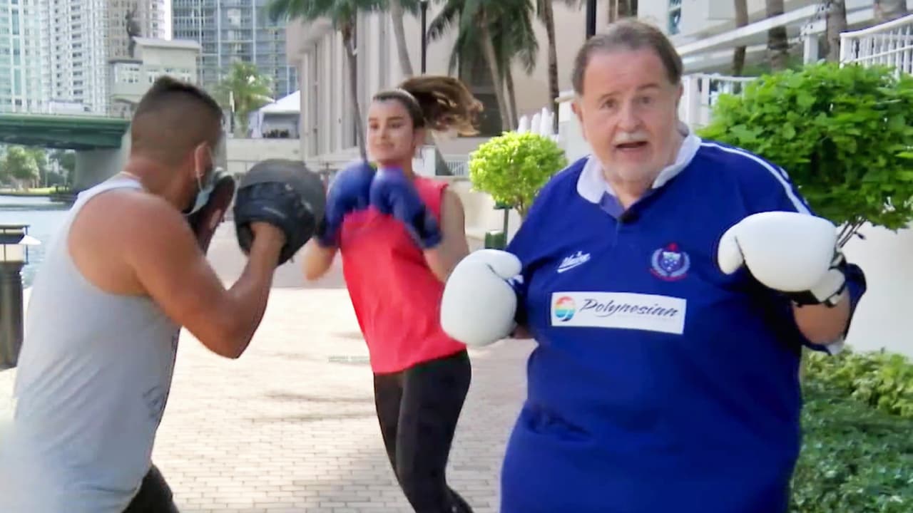 El Gordo, quien siempre busca estar en forma, fue invitado por la dominicana a entrenar juntos bajo la rutina de ejercicios 'El Estalle' que ella practica, al igual que Kate del Castillo. El entrenador y creador de la misma, Alex Fitbox, estuvo presente para constatar el progreso de nuestro presentador y al parecer no le fue tan mal en su evaluación.