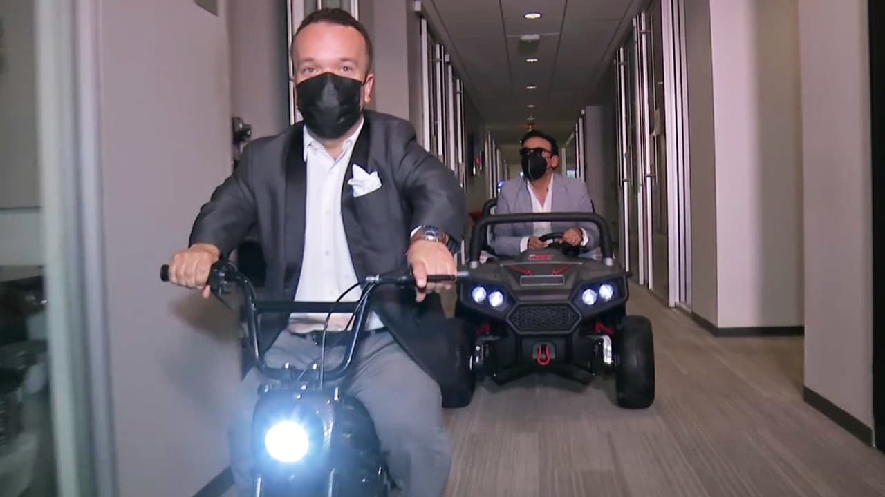 A unos días del estreno de Nuestra Belleza Latina, 'El Productor' recibió a su llegada a Univision a uno de sus jueces, el actor, conductor y productor mexicano Adal Ramones, a quien 'Carlitos' aprovechó para darle un recorrido por las instalaciones y prestarle uno de sus lujosos y sofisticados vehículos.