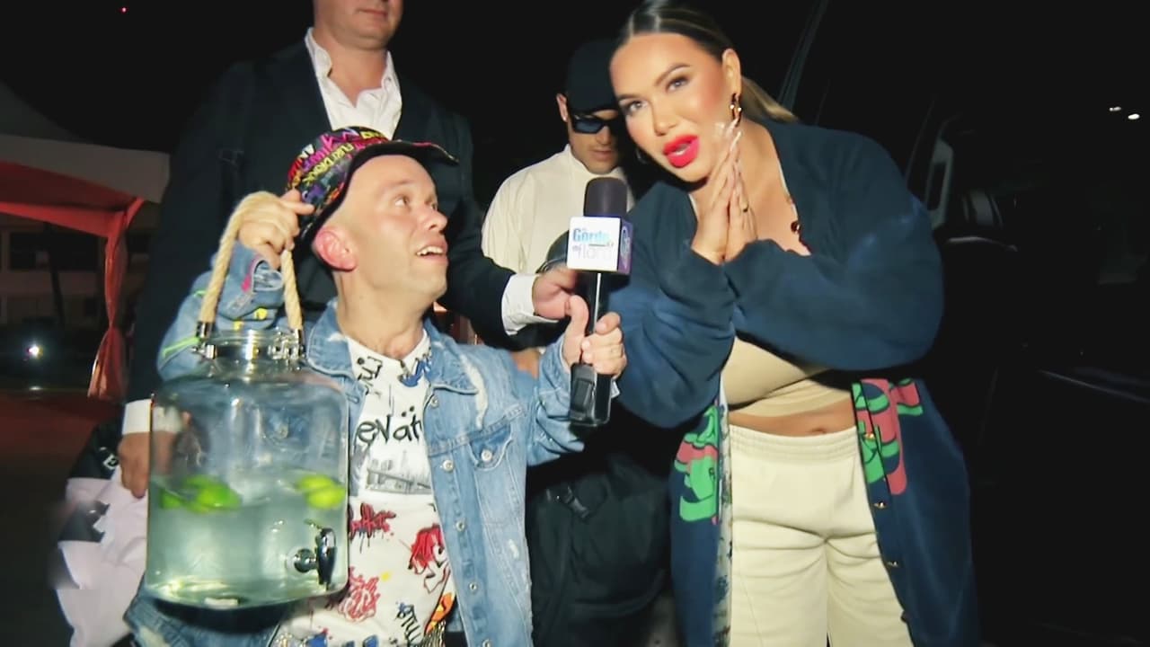 'El Productor' se lo pasó muy bien en el backstage de la fiesta del verano, ya que pudo saludar y entrevistar a muchos artistas: Farruko, Becky G, Gente de Zona, Lennox, entre otros. Entre bromas y algunos regalitos, 'Carlitos' se encontró con Chiquis, una de las conductoras de la noche, a quien le llevó su 'agüita de limón' que tanto ha promocionado para bajar de peso.