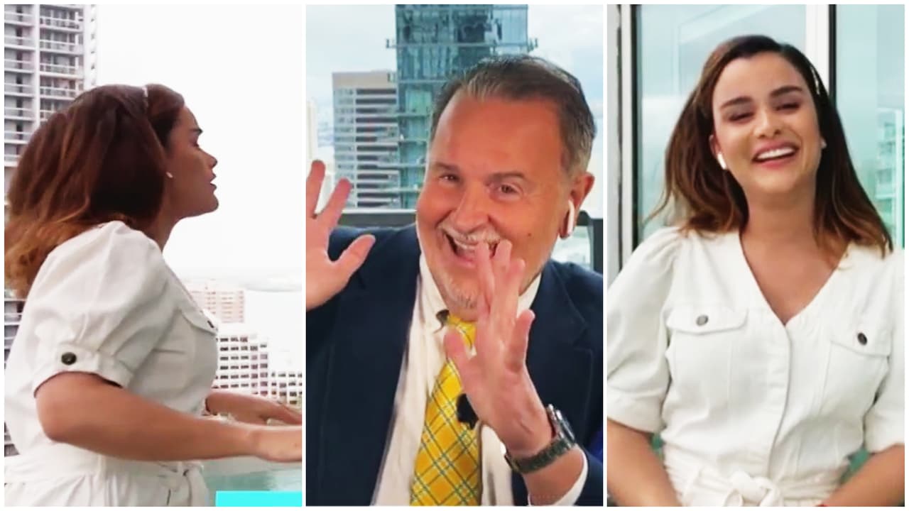 El Gordo y la presentadora dominicana no han podido verse cara a cara debido a la contingencia de salud en el país, pese a que viven muy cerca el uno del otro. Así que la conductora quiso probar si podían intercambiar un afectuoso saludo y este fue el resultado.