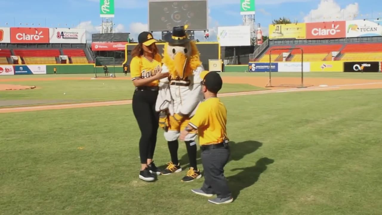 La presentadora llevó a Carlitos a los entrenamientos del equipo de béisbol Águilas Cibaeñas donde conversaron con el entrenador de bateo Luis Polonia. El productor conoció a la mascota del equipo y realizó unas prácticas de bateo.