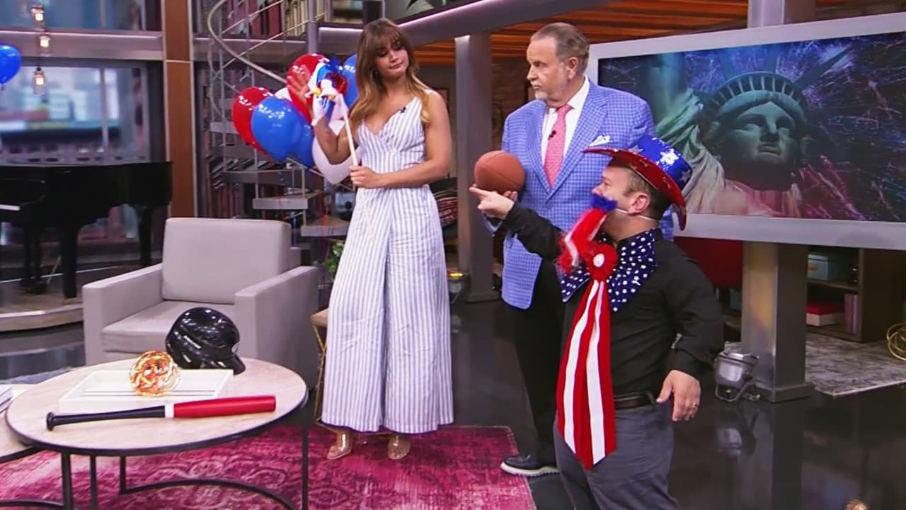 Disfrazado de 'Tío Sam' con su larga barba, nuestro 'productor' le dijo a El Gordo que le pagaría 10 dólares por cada acierto al blanco con un balón de fútbol americano, como si fuera 'quaterback'. Descubre si el conductor logró el reto o no.