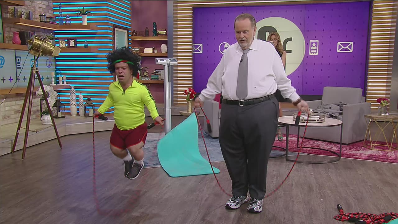 El Gordo regresa de su tour gastronómico con la intención de bajar de peso (el estudio es su gym)