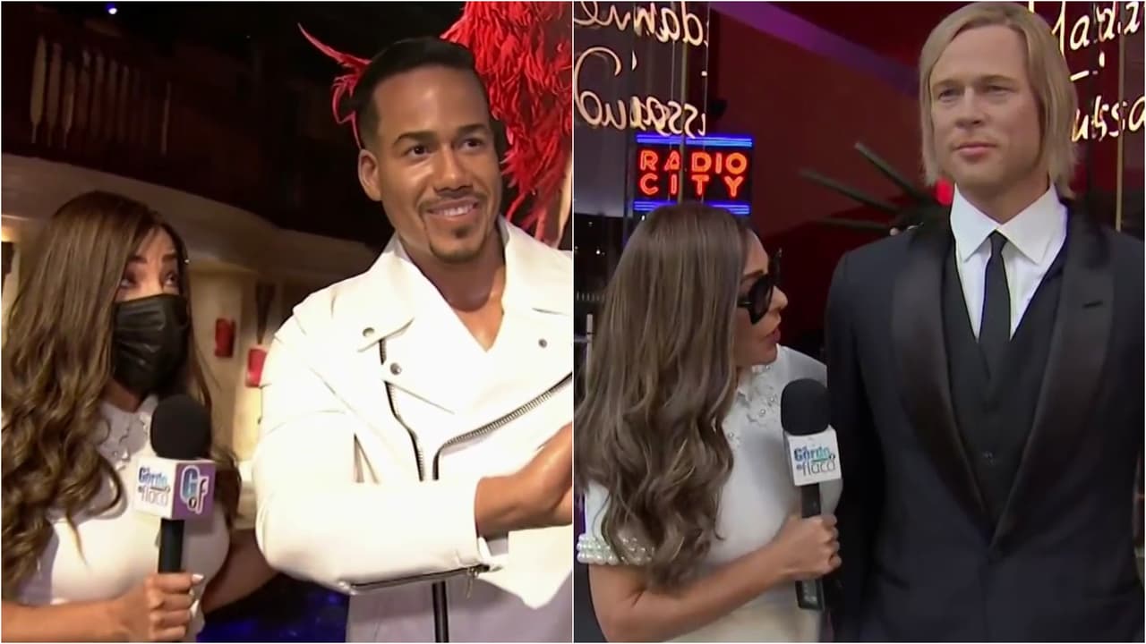 Gelena se olvida del distanciamiento social al estar cerca de Romeo Santos y Brad Pitt en figuras de cera
