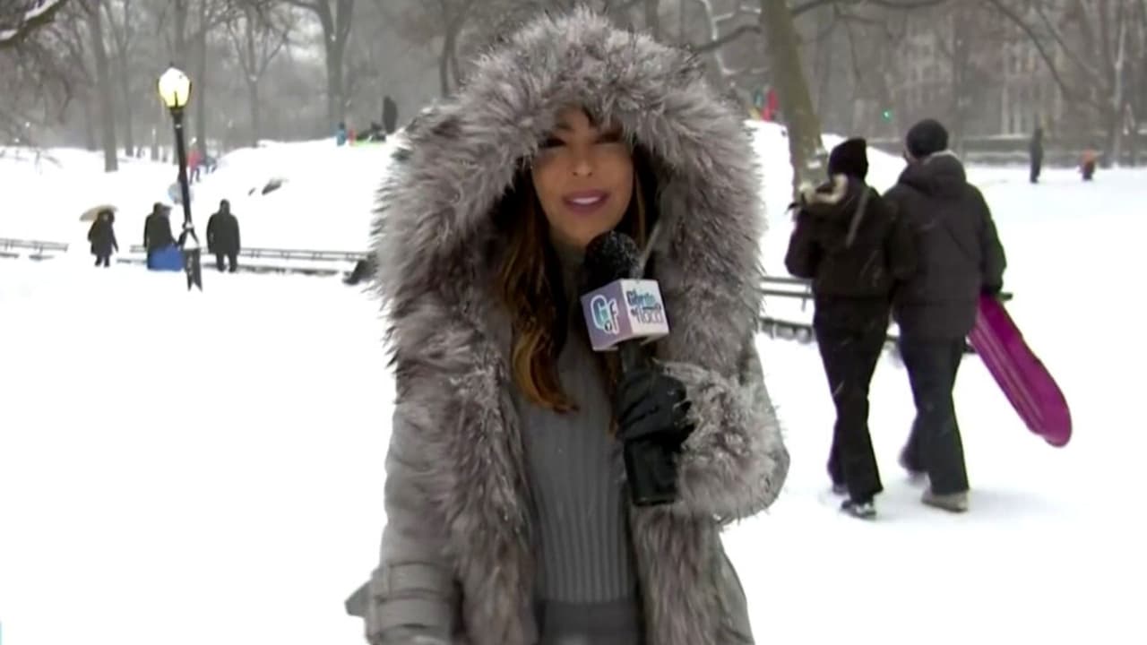 La reportera dominicana informó, con el Central Park totalmente blanco de fondo, sobre la nevada más intensa en cinco años que vive la 'Gran Manzana'. Los vuelos han sido cancelados, todos los restaurantes permanecen cerrados y se esperan entre 14 y 16 pulgadas de nieve.