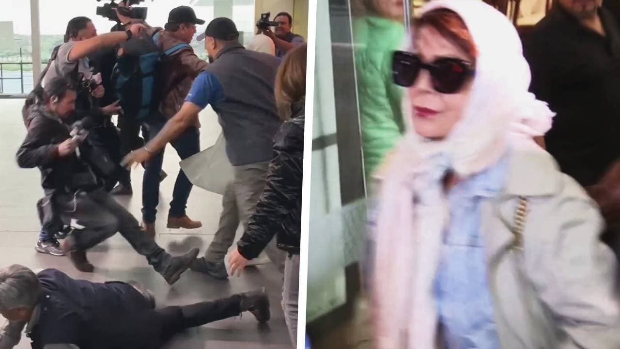 La roquera mexicana fue sorprendida en el aeropuerto de la Ciudad de México por la prensa, que deseaba obtener una declaración de su parte. Su equipo de seguridad intentó alejar a los medios de comunicación causando tremendo revuelo.